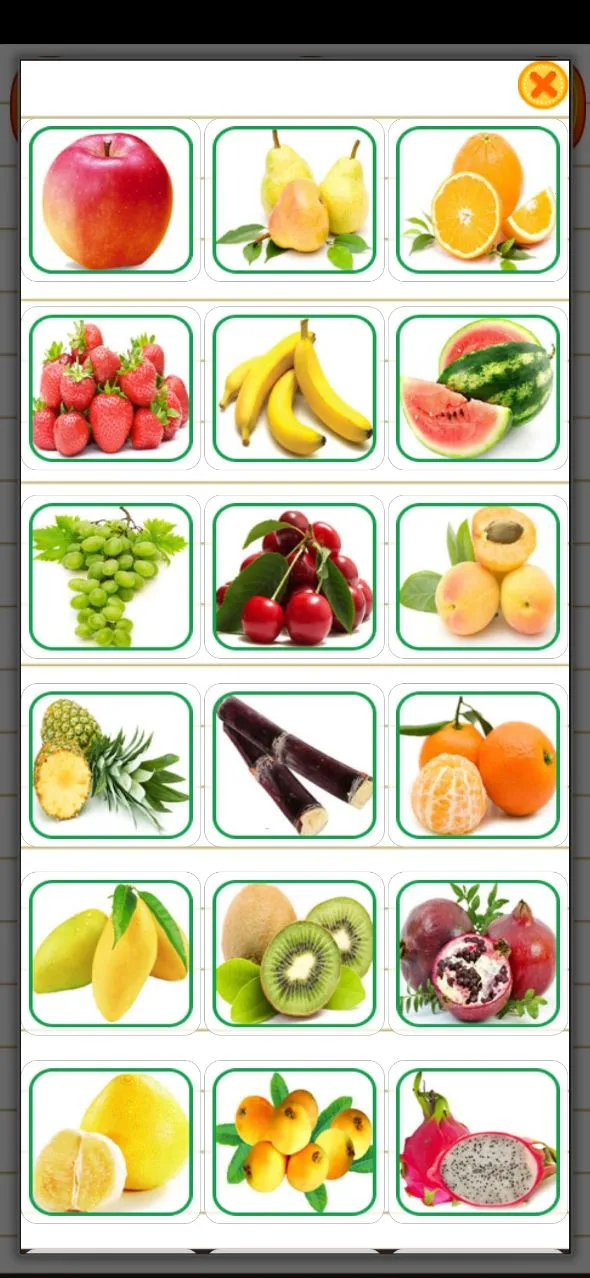 1、首先进入学习模式仔细浏览各种水果分类,选择感兴趣的水果类别开始认知学习,通过高清图片和语音讲解认识不同水果的名称和特征。