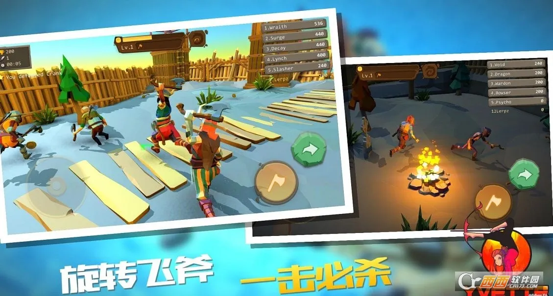 1. 玩法简单持久,投掷斧头杀敌人后捡起继续战斗,也能猥琐发育收集斧头连射。