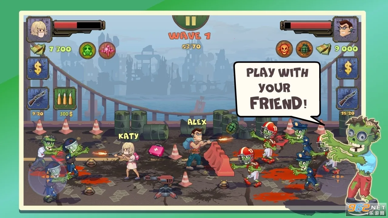 1. 独特合作玩法:需两名玩家联手对抗僵尸,在资源管理、战术位置配合等方面深度合作,提高生存几率,增添游戏乐趣与挑战。