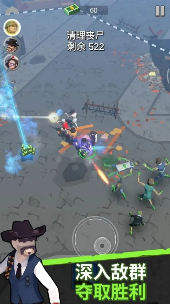 2. 能组建小队,和队员一起对抗丧尸,解锁新地图与强力武器。