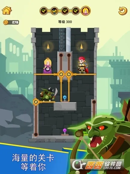 英雄救援任务(沙盒世界)是一款超有趣的冒险解谜游戏。在游戏里,你将扮演勇士,通过思维和操作机关障碍,为英雄开辟安全逃离路线。比如拉销子杀死蜘蛛,拯救公主并获取宝藏。这里有几十个精心设计的地牢关卡,布局各异,通关任务要求也不同。英雄角色与怪物位置不断变化,还有很多巧妙机关障碍物。操作简单,旋动阻隔杆就能改变自己或敌人位置。它结合物理原理,极具挑战性,每个关卡都是新挑战。加入了落石、水火、地刺等新陷阱元素。游戏氛围轻松,是佛系闯关的好选择。你要多动脑思考如何避开危险,利用各种技巧通关。失败了也没关系,重新开始吸取教训就行。快来体验这款充满冒险与机遇的游戏,展现你的聪明才智,解救公主,获取宝藏吧!