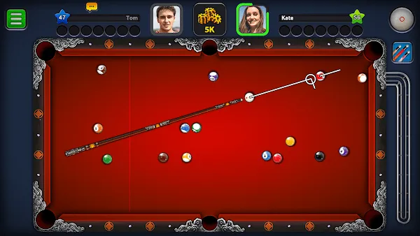 台球之王8球游戏是一款主打真实8球台球体验的竞技手游,凭借精准的物理引擎和细腻的画面,还原了台球运动的核心魅力。游戏遵循国际8球规则,玩家需在规定时间内,通过合理的杆法和走位,将自己的目标球单色或花色全部击入袋中,最后击入黑8获胜。无论是新手练习基础杆法,还是高手比拼战术走位,都能在游戏中找到适合自己的玩法。丰富的球桌场景多样的球杆选择,以及实时匹配的对战模式,让玩家随时随地都能体验台球竞技的乐趣,感受一杆清台的成就感。采用专业台球物理引擎,母球与目标球的碰撞旋转反弹等效果贴近真实,击球手感细腻,操作反馈精准。严格遵循国际8球规则,包括开球犯规胜负判定等,让玩家在游戏中体验专业的台球竞技氛围。提供10余种不同属性的球杆,从入门级到专业级,每种球杆的力度精度旋转效果不同,满足不同需求。包含酒吧俱乐部锦标赛等8种场景,球桌纹理灯光效果逼真,营造出不同的台球竞技氛围。利用游戏中的瞄准线,调整击球角度,确保目标球的行进路线指向袋口,提高进球成功率。击球前规划母球的停留位置,通过调整击球点高低左右产生旋转,让母球停在有利位置。当没有合适的进攻机会时,可将母球藏在非目标球后面,形成障碍球,限制对手的进攻选择。击球前观察所有目标球的位置,优先选择容易击打的球,形成连续进攻,逐步清理台面。先在离线练习模式熟悉基本操作,掌握直线球和简单反弹球的击打方法,完成新手引导任务获取初始球杆。优先升级精准度和旋转属性,这两个属性对控球和走位影响较大,能提升击球的稳定性。当目标球分布零散时,先处理有角度的球,利用母球旋转调整位置,为后续击球创造条件,逐步简化球局。注意不要用母球直接击打对手的目标球或黑8除非已清完自己的球,避免母球落袋,减少不必要的失误。参加锦标赛时,前几轮对手较弱,可主动进攻争取快速取胜后期遇到强手,注重防守和反击,抓住对手失误得分。每天完成连续击球一杆清台等日常任务,获取大量金币和经验,加速球杆升级,提升竞争力。邀请技术相当的好友对战,赛后交流杆法和战术,互相学习,共同进步,快速提升自己的实战水平。