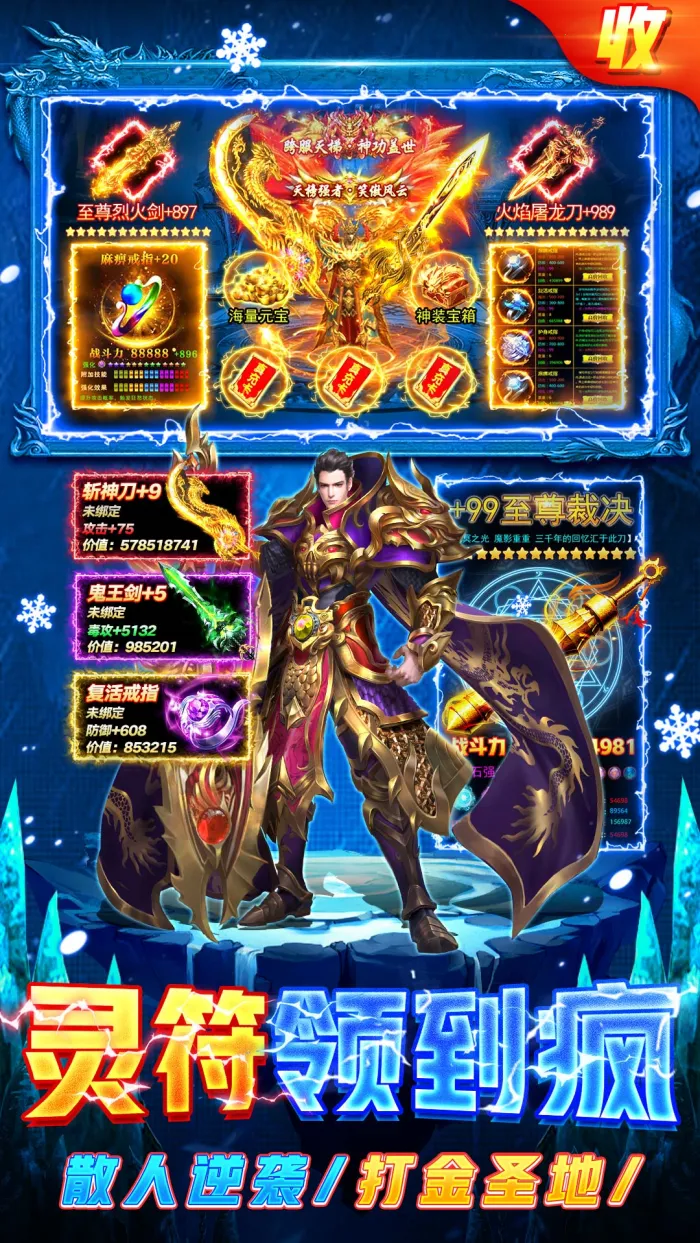 - 1. 零氪爆装无上限,真充灵符拿到疯,上线送满级,神装全靠砍。