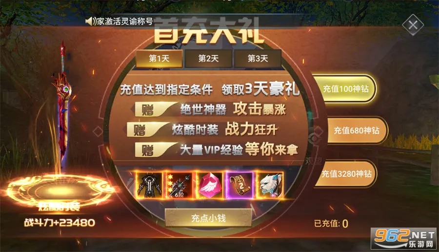 3. 福利丰厚,登录即赠GM2身份、大量钻石等,还有全新GM扶持工具,在线送万元充值卡,金券集点活动助力成长。