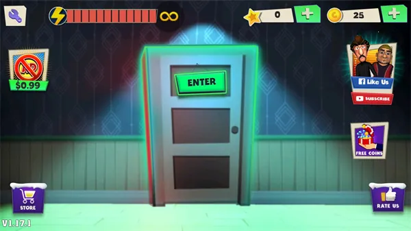 可怕的强盗安卓版手机版是一款题材经典且玩法有趣的整蛊类冒险游戏。它以布赖恩参加夏令营回来发现房子被强盗霸占,为教训他们而展开一系列恶作剧和惊险计划为背景打造。游戏剧情精彩丰富,玩法模式独特,采用全新3D引擎设计,有众多紧张刺激的游戏场景,能带来极大真实代入感。其采用第一人称视觉,操作方式简单,通过虚拟按键控制角色自由移动、跳跃及精准射击来完成任务,帮助布赖恩对付强盗。游戏有大量关卡,内置超多道具物品可解锁使用,需在充满真实氛围的环境中策略制定计划、掌握技巧,助布莱恩完成恶作剧和惊险计划。还能与布赖恩一起冒险,体验强盗和孤独男孩的冲突,类似整蛊邻居玩法,利用身边道具打败强盗。简单轻松的操作,道具需合理使用,否则易失败。游戏模式多样,娱乐性强,还有新手教程训练,故事情节引人入胜,玩家可发挥头脑,用各种道具欺负强盗,做到来无影去无踪,让盗贼头痛。