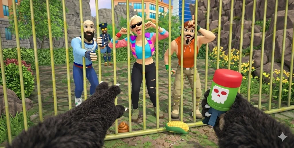 欢迎来到捣蛋熊猫的欢乐世界,在这里,你将体验到无尽的欢笑与调皮。作为一只无畏无惧的熊猫,可自由探索广阔的开放世界公园,这里有各种搞笑的恶作剧机会。这是个充满创意与乐趣的生活模拟器,带你进入充满乐趣的冒险旅程。在捣蛋熊猫中扮演调皮熊猫,沉浸在色彩斑斓的开放世界,公园里从郁郁葱葱的竹林到热闹的游乐场等各式各样场景等你探索,自由移动利用环境道具和障碍设计恶作剧计划,给周围角色带来意想不到的欢乐。能体验各种恶作剧,利用智慧和机敏捉弄其他角色,轻轻一跳或一个滑稽动作就能引发连锁反应,让周围人陷入搞笑尴尬境地,成功恶作剧带来难忘瞬间,不断挑战创意和技巧收集好友笑声。任务与挑战设计简单有趣,每日任务不断更新,完成特定恶作剧或寻找隐藏宝藏等任务让人乐在其中,破解挑战可解锁新恶作剧道具和区域丰富游戏体验。提供流畅动作与俏皮动画,通过简单手势发起搞笑互动,角色细腻反应带来无穷欢乐。随着游戏深入,幽默经历带来独特奖励与成就,完成任务和恶作剧能解锁新技巧、独特角色服装和道具,增加趣味性与成就感。还会遇到各种有独特个性和故事的NPC角色,与他们互动进行善意捉弄或搞笑交流,开启更多任务与挑战,多样化角色设置增添游戏色彩。无论是追逐逃跑还是设计恶作剧,捣蛋熊猫都让每一刻充满生机与欢笑,快来加入这场滑稽冒险,成为调皮熊猫创造幽默传奇,MOD版本还有独特游戏乐趣,有变速功能可掌控游戏节奏,彻底去除广告带来纯粹游戏体验。