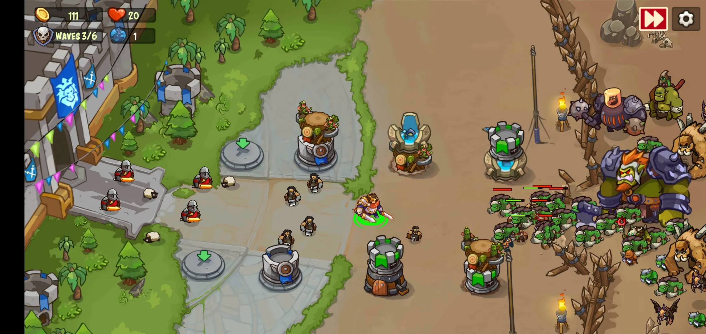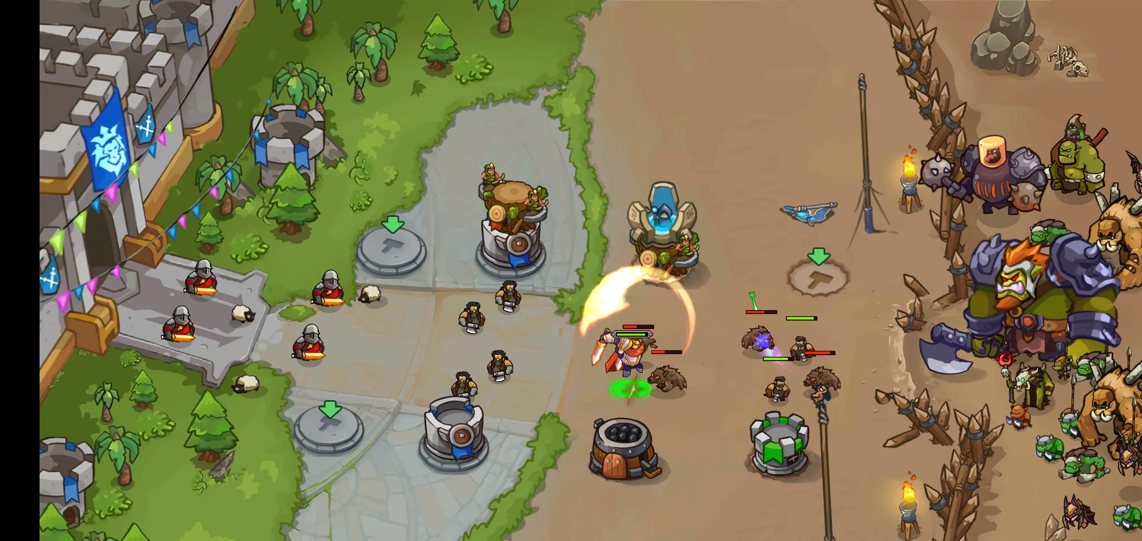 王国防御:战争前线是一款独特塔防游戏,能通过炮塔组合优化战术,玩家可堆叠炮塔制定关卡最佳策略,置身史诗战斗,操控英雄与战士保卫自己的王国。