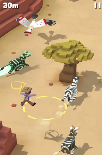 疯狂动物园是一款3D像素风休闲游戏,融合跑酷与模拟经营。玩家扮演牛仔在多地高速奔驰捕抓200余种动物,安置在动物园饲养升级,通过吸引游客赚取金币,还有多种特色玩法与更新活动。