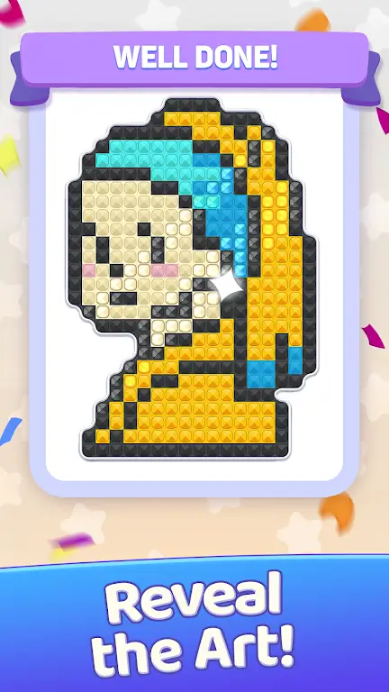 2. 拥有丰富的艺术收藏,提供数以百计像素艺术作品,涵盖自然风光到可爱角色等,不断增加新作品,确保分类之旅充满新鲜感与探索欲。
