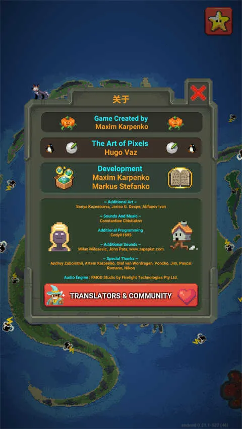 世界盒子沙盒上帝模拟器0.10.3破解版是一款高度自由的像素风沙盒模拟游戏。玩家可化身为造物主,在2D世界中创造、引导、干预或毁灭一切,体验文明兴衰,感受多种玩法,无需联网,离线畅玩。