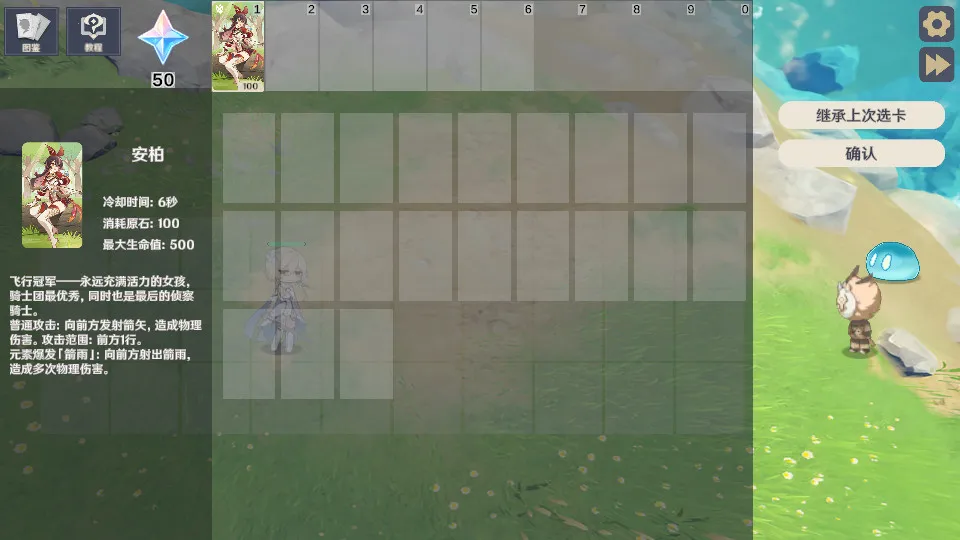 《原神大战原魔remake》是一款玩法独特的游戏。它类似PVZ,玩家要消耗原石召唤角色击退魔物。进入游戏后,先点击屏幕进入选关界面,挑选关卡,再选角色卡牌和属性就可闯关。正式开始后,消耗原石召唤角色战斗,点击旅行者能移动位置攻击敌人。每个关卡有不同波数敌人,消灭所有敌人就能通关。