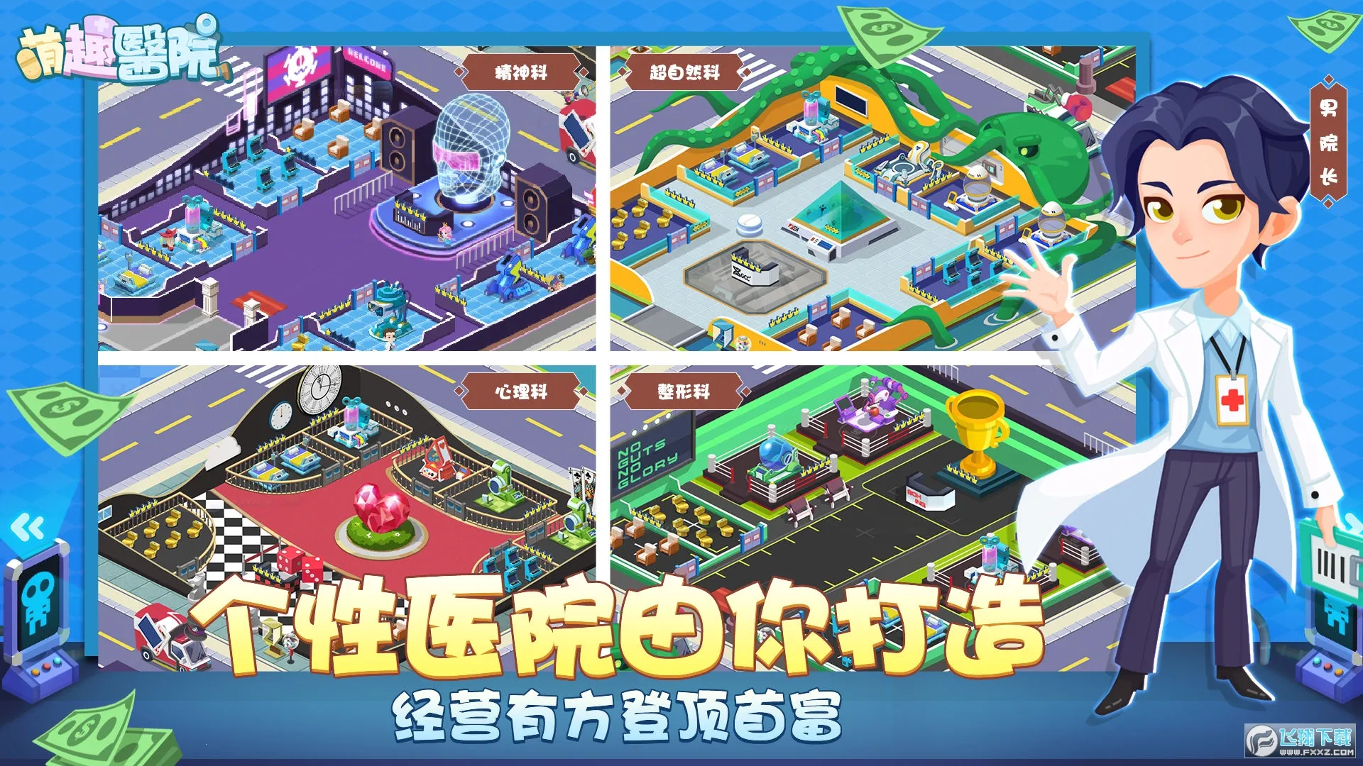 超大地图场景:拥有超大地图场景,能自由扩建并摆设科室,装饰装潢随心所欲,满足多样创意。