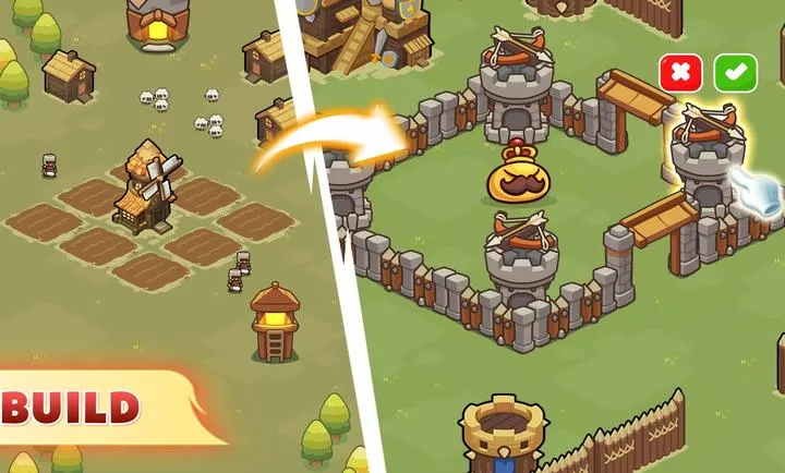 2. 可组建防御者大军,从弓箭手到骑士,保卫王国堡垒,抵御多方围攻。