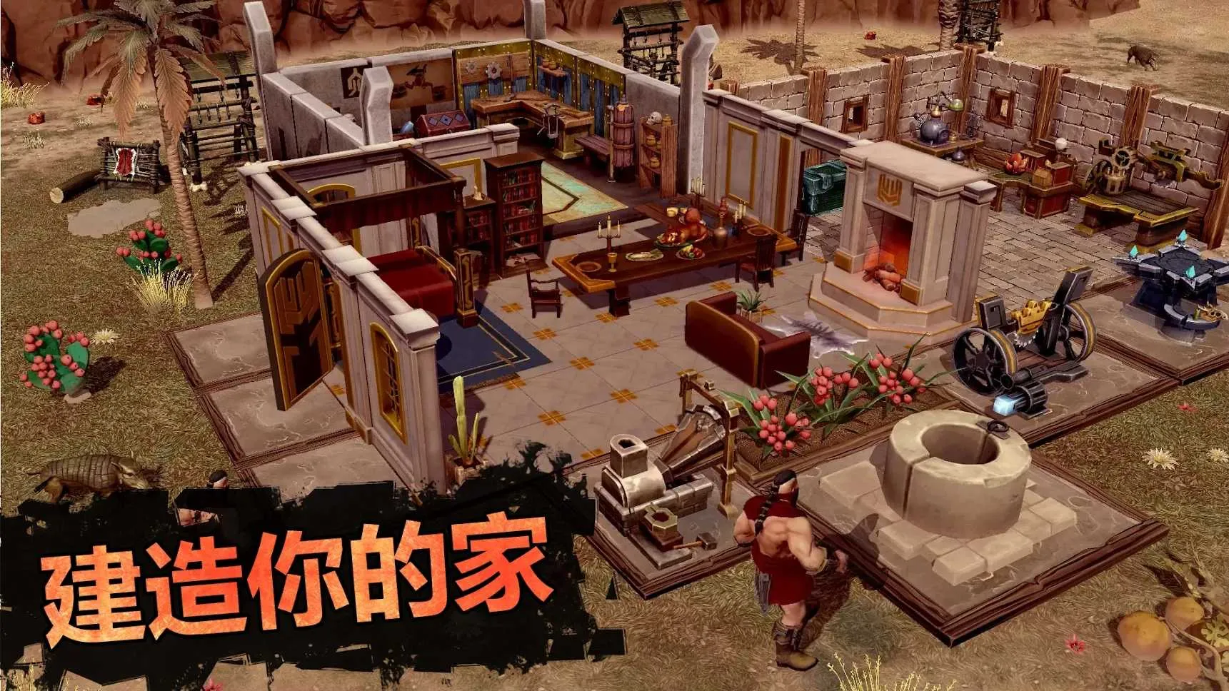2. 生存玩法丰富,要建造庇护所并保护它,狩猎、与怪物战斗、升级英雄,在开放世界荒地中茁壮成长。