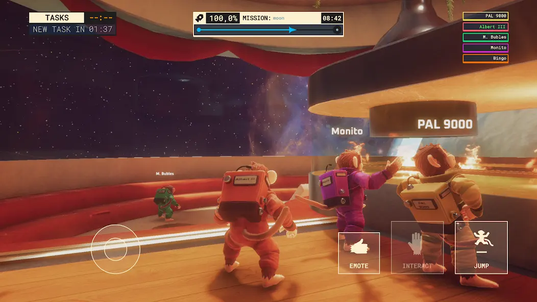 《猩空大冒险2026最新版本》是一款支持18人合作的多人动作游戏。玩家将与太空猴子一起执行任务,处理突发状况,升级飞船舱室。游戏有40款小游戏,多种难度模式,支持线上联机或离线单人,可打造专属太空船,冲向群星。